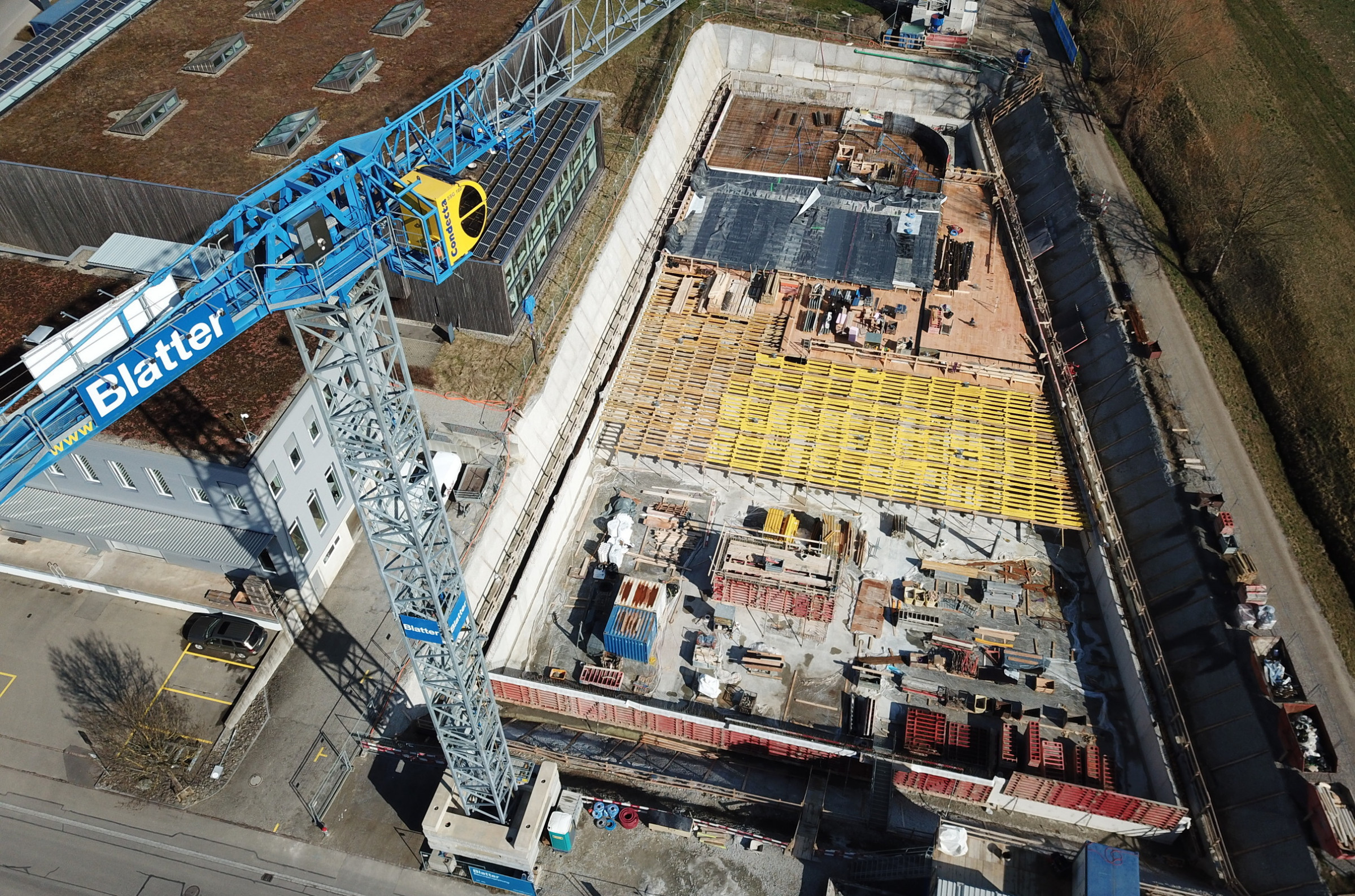An der Wülflingerstrasse 5 in Oberohringen entsteht das neue Bürogebäude für "Netcloud". Die Blatter AG führt bei diesem Projekt die Baumeisterarbeiten aus.