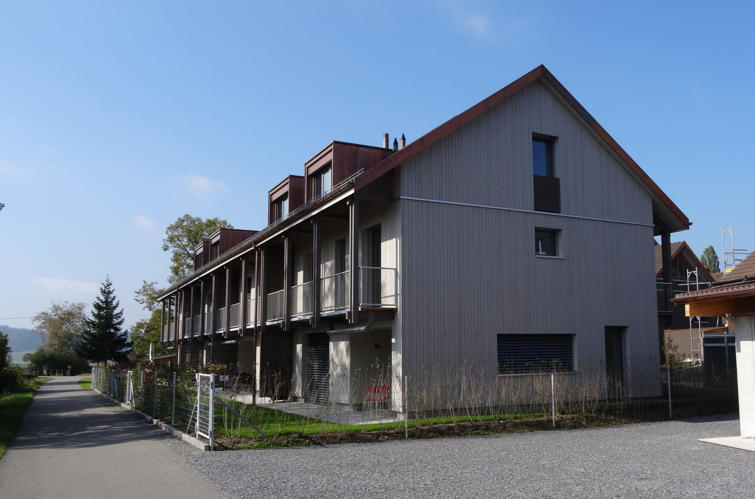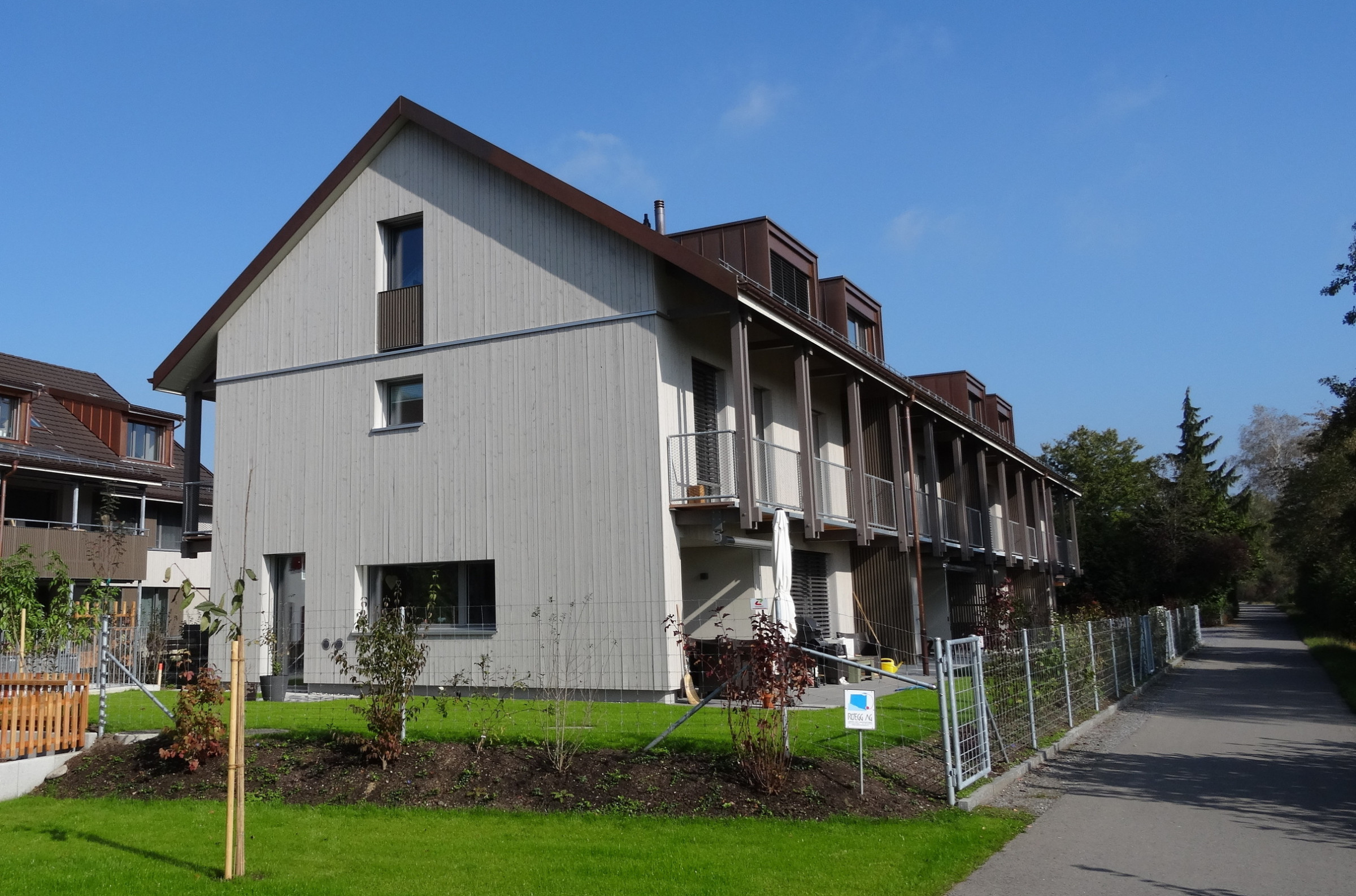 Bei der Wohnüberbauung 'Chrebsbach' in Unterohringen, die am gleichnamigen Bach liegt, wurden insgesamt 4 Reiheneinfamilienhäuser sowie 5 Eigentumswohnungen erstellt.