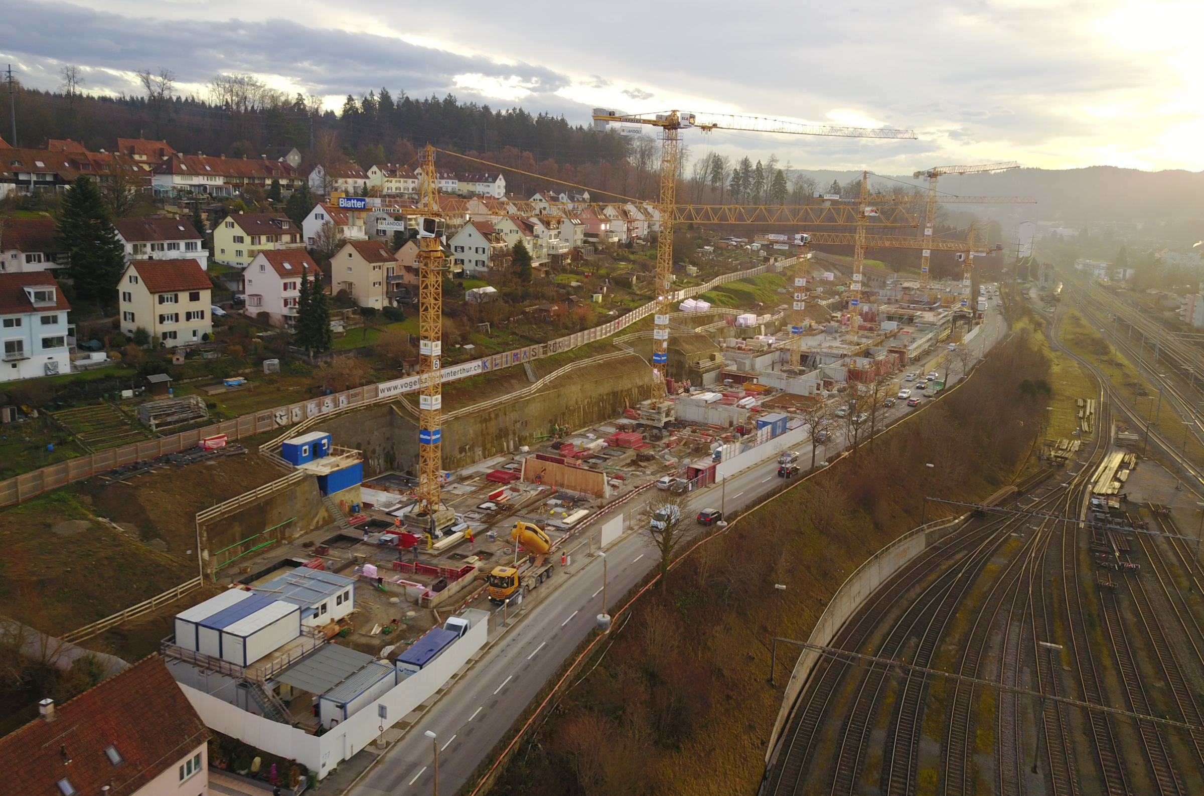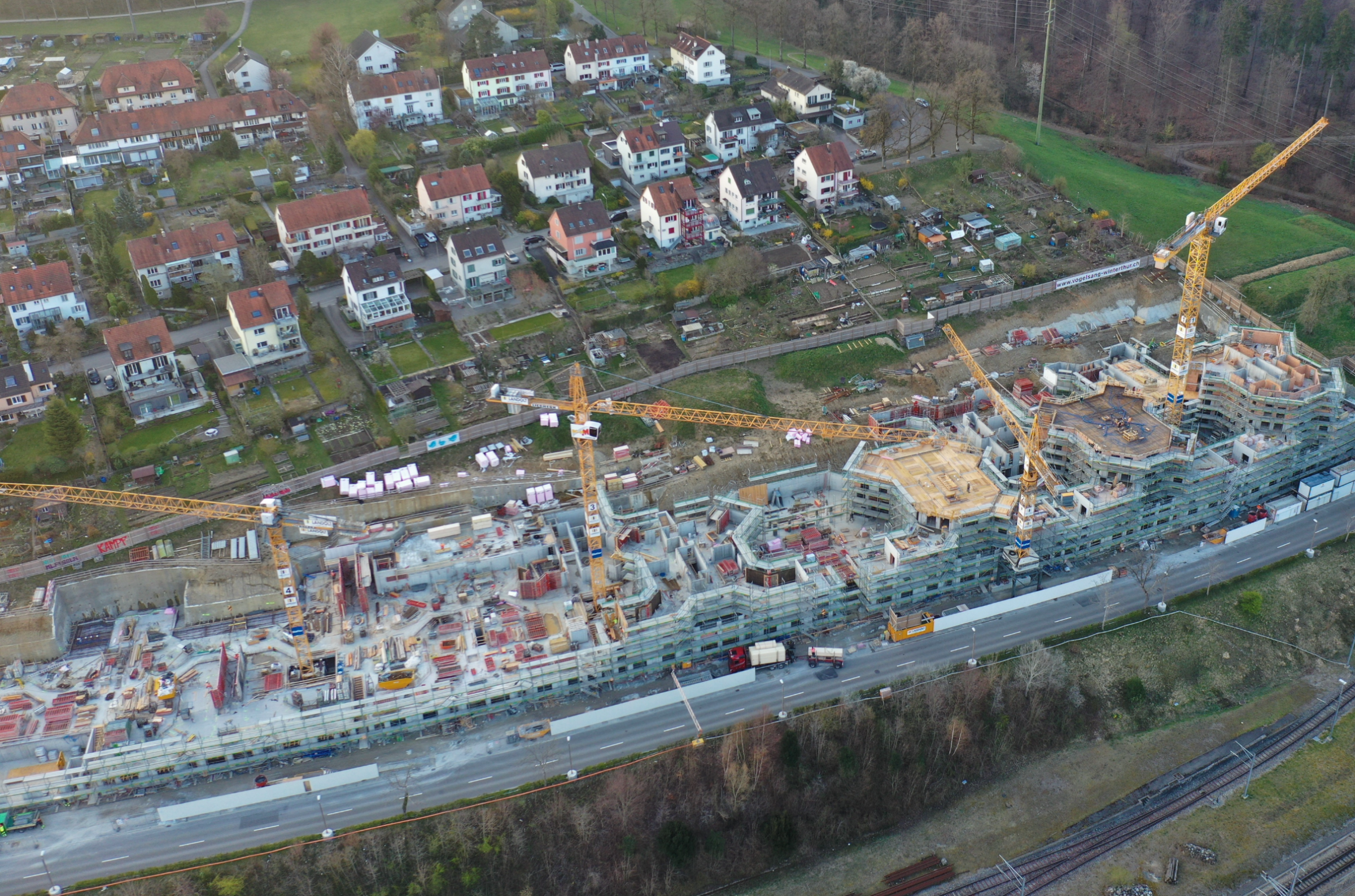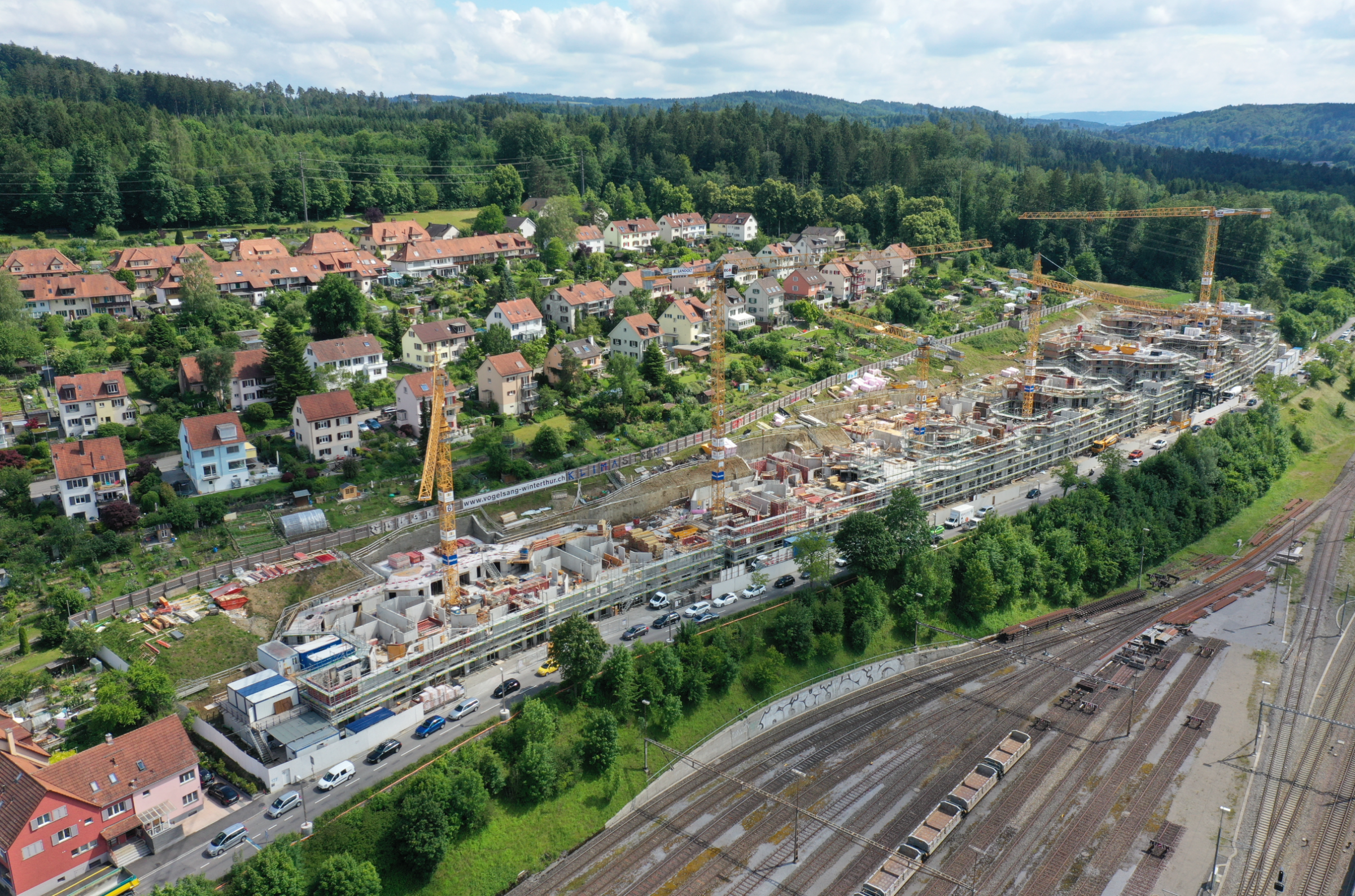Die Natur im Rücken und die Stadt zu Füssen: Bis zum Sommer 2021 baute die GWG im Vogelsang im Zentrum von Winterthur rund 150 Wohnungen mit 2.5 bis 6.5 Zimmern für jede Lebenslage. Dabei wurden die Baumeisterarbeiten in einer Arbeitsgemeinschaft (ARGE L/S/B Vogelsang) von folgenden drei Firmen ausgeführt: