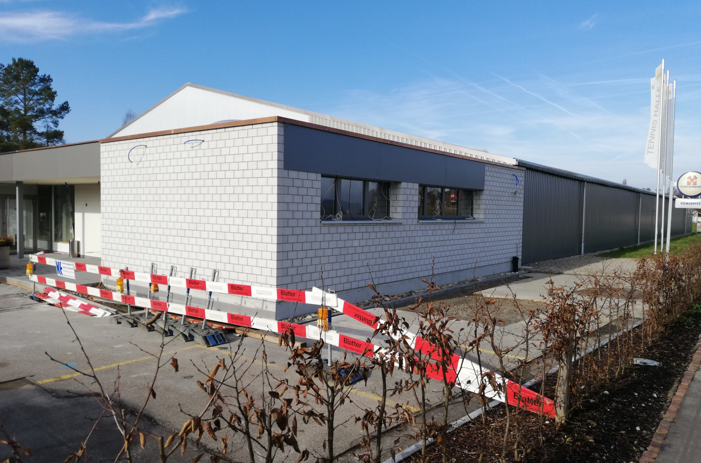 Bei der "Tennis Arena" in Elsau wurde ein An- und Umbau durch unsere Kundendienstabteilung realisiert. Im neuen Anbau entstand unter anderem ein Raum, in dem sich die Tennisspieler künftig vor ihrem sportlichen Einsatz aufwärmen können.