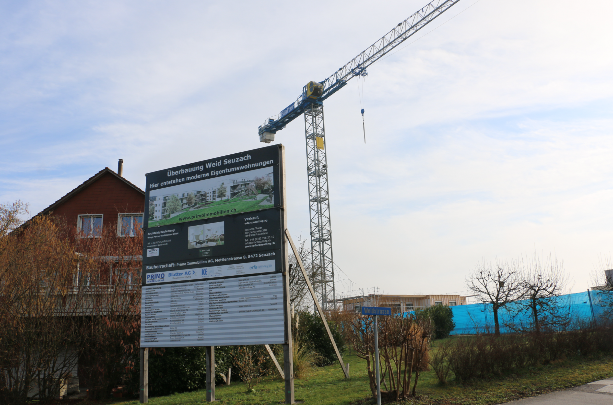 Die Primo Immobilien AG, bei der unter anderem die Blatter Liegenschaften AG beteiligt ist, erstellt an der Weidstrasse in Seuzach 4 Mehrfamilienhäuser. Die modern ausgebauten und lichtdurchfluteten 3 ½ bis 5 ½ Zimmer Wohnungen liegen an ruhiger, familienfreundlicher Wohnlage. Die Blatter AG führte bei diesem Projekt die Baumeisterarbeiten aus.